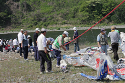 鯉のぼりの補修作業や、上げ下ろしの作業は毎年多くの地域の方々、ボランティアの方々が中心となって作業をおこなっております。ボランティアとしてお祭りに参加してみませんか。